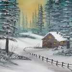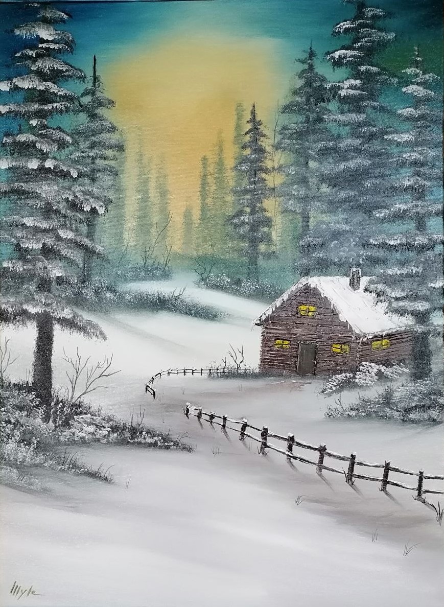 Peinture à l'huile alla prima style Bob Ross 75x55 cm